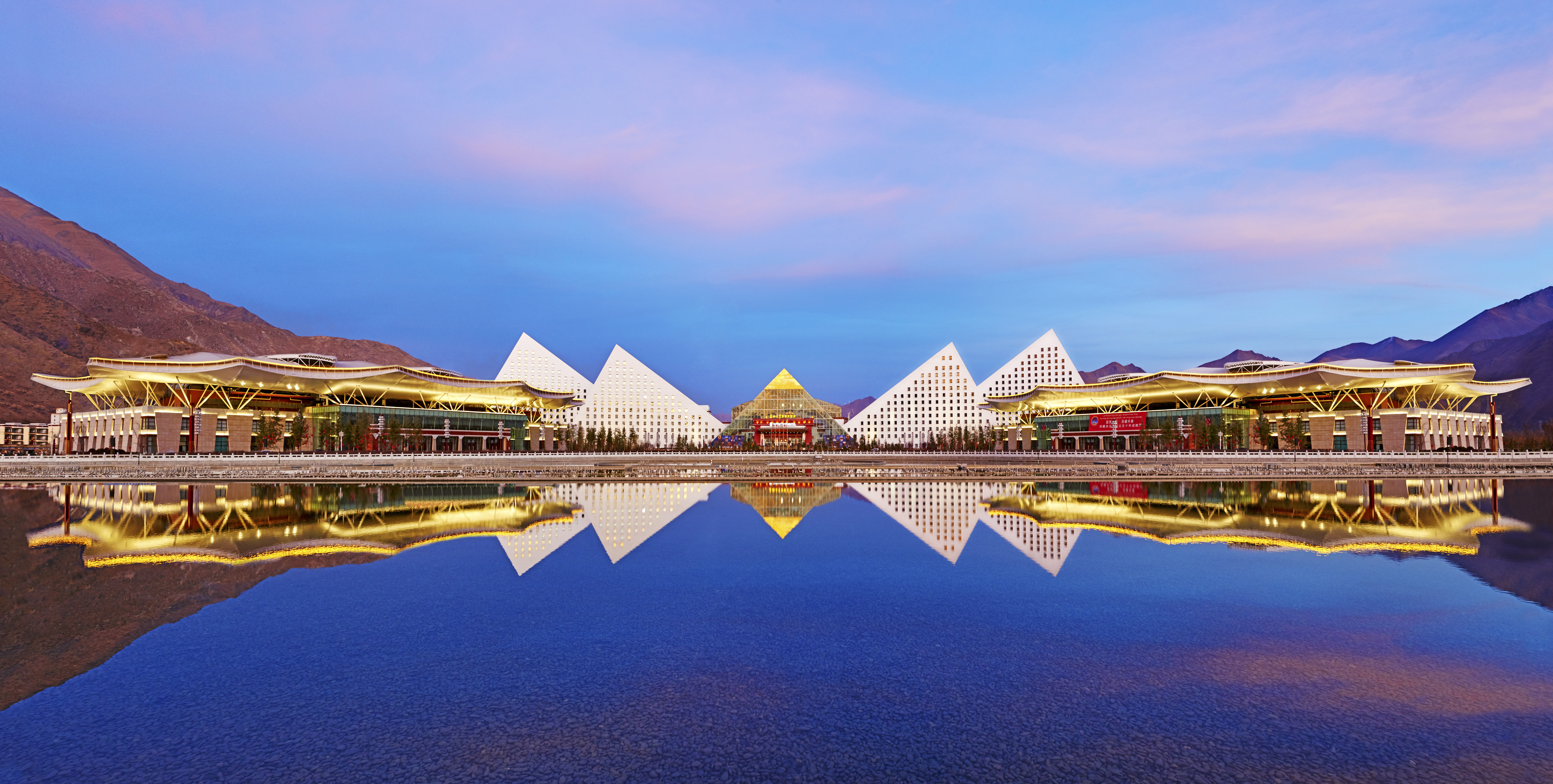 2014年,中交一公局集團(tuán)承建的西藏會(huì)展中心正式投入使用。西藏會(huì)展中心總建筑面積約3.5萬平方米,建成后,成為當(dāng)?shù)丶褂[展示、會(huì)議論壇、文化交流于一體的綜合性地標(biāo)建筑。