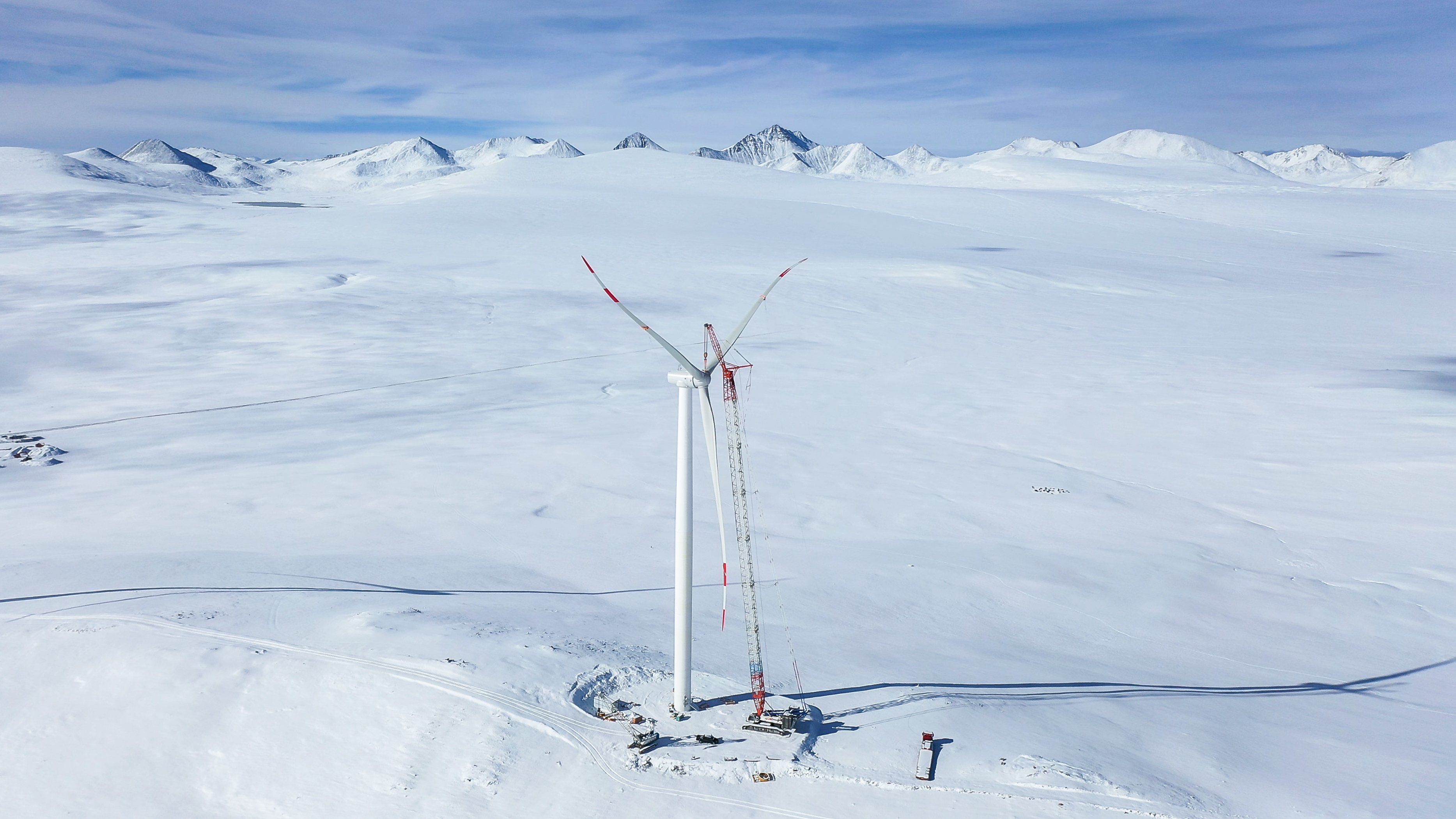 東方電氣集團為超海拔風電場——西藏措美縣哲古分散式風電項目自主研制超高海拔風電機組,其中一臺安裝機位達5060米,機組輪轂中心5150米。