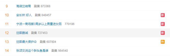 據(jù)統(tǒng)計,目前直接以“狂飆”為關(guān)鍵字的熱搜詞條已達18條。以劇中主要角色為關(guān)鍵詞,已有與“安欣”相關(guān)的熱搜22條,以“高啟強”為關(guān)鍵字的熱搜詞條16條,與“陳書婷”“大嫂”“李響”“高啟盛”“高啟蘭”“安長林”等角色相關(guān)的熱搜話題超過60條。