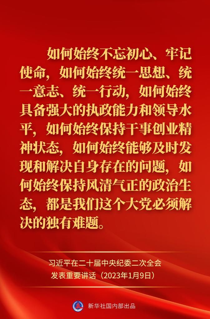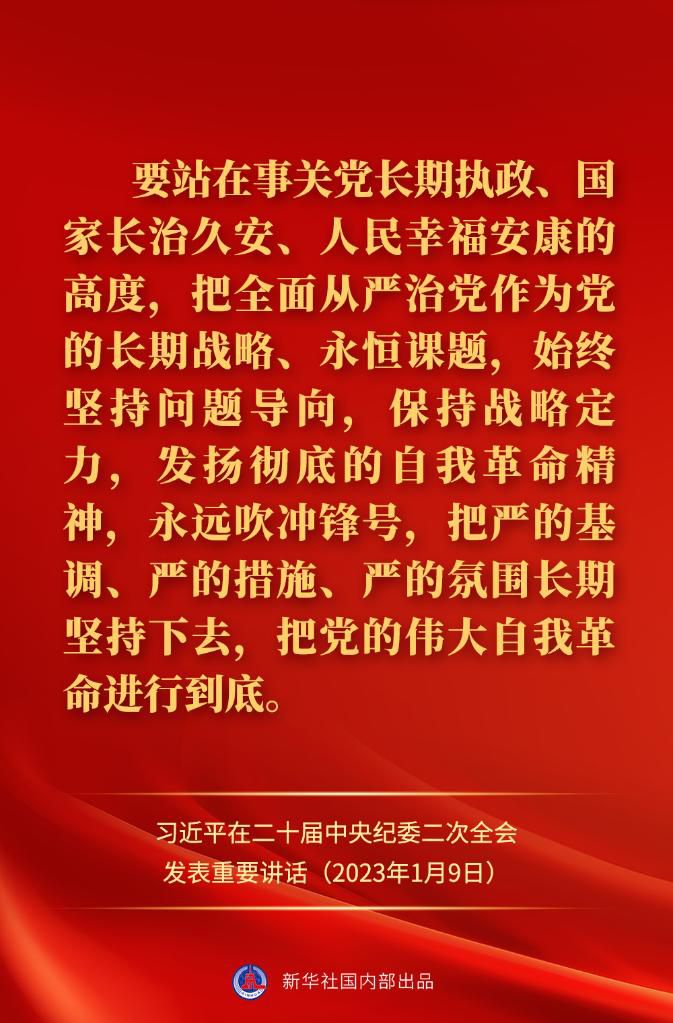 中共中央總書記、國家主席、中央軍委主席習近平9日上午在中國共產(chǎn)黨第二十屆中央紀律檢查委員會第二次全體會議上發(fā)表重要講話,一起來看金句。