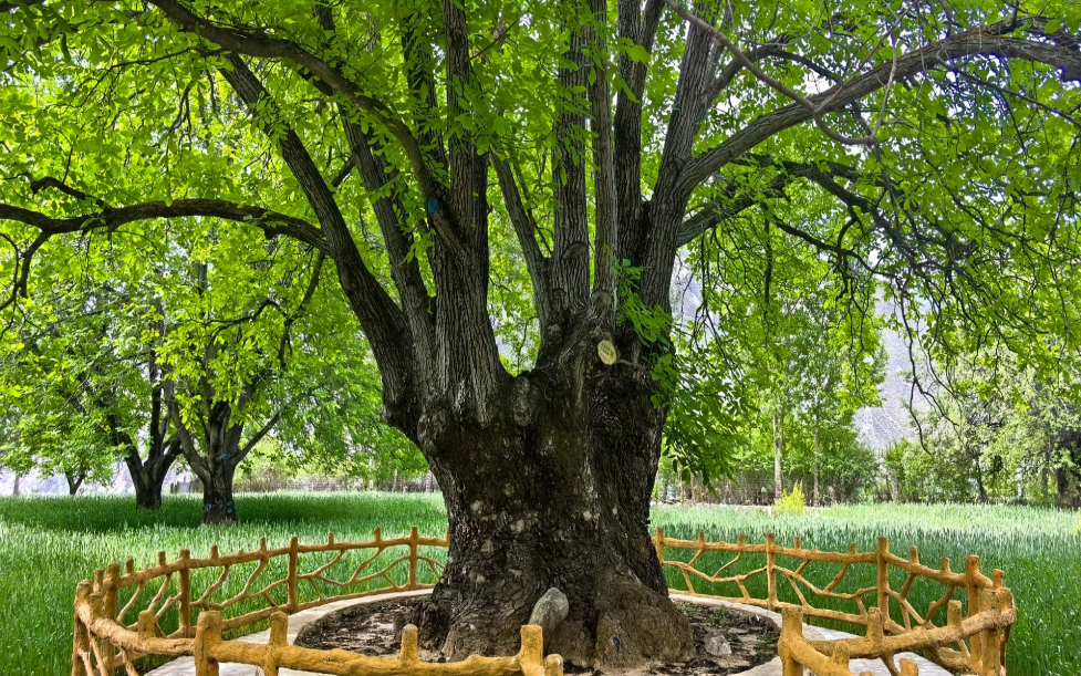 微風(fēng)輕拂,核桃枝葉沙沙作響,好像在訴說(shuō)著過(guò)往的歲月,引領(lǐng)我們穿越千年的時(shí)光,感受歲月的變遷。