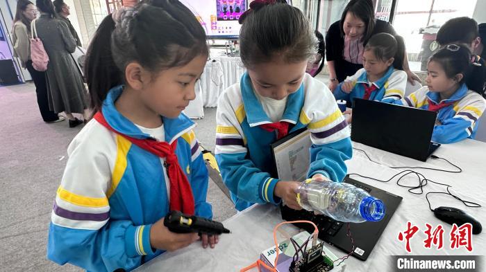 圖為西藏自治區(qū)拉薩市城關(guān)區(qū)海城小學(xué)的學(xué)生正在學(xué)習“AI創(chuàng)客”的課程。澤塔雍措攝