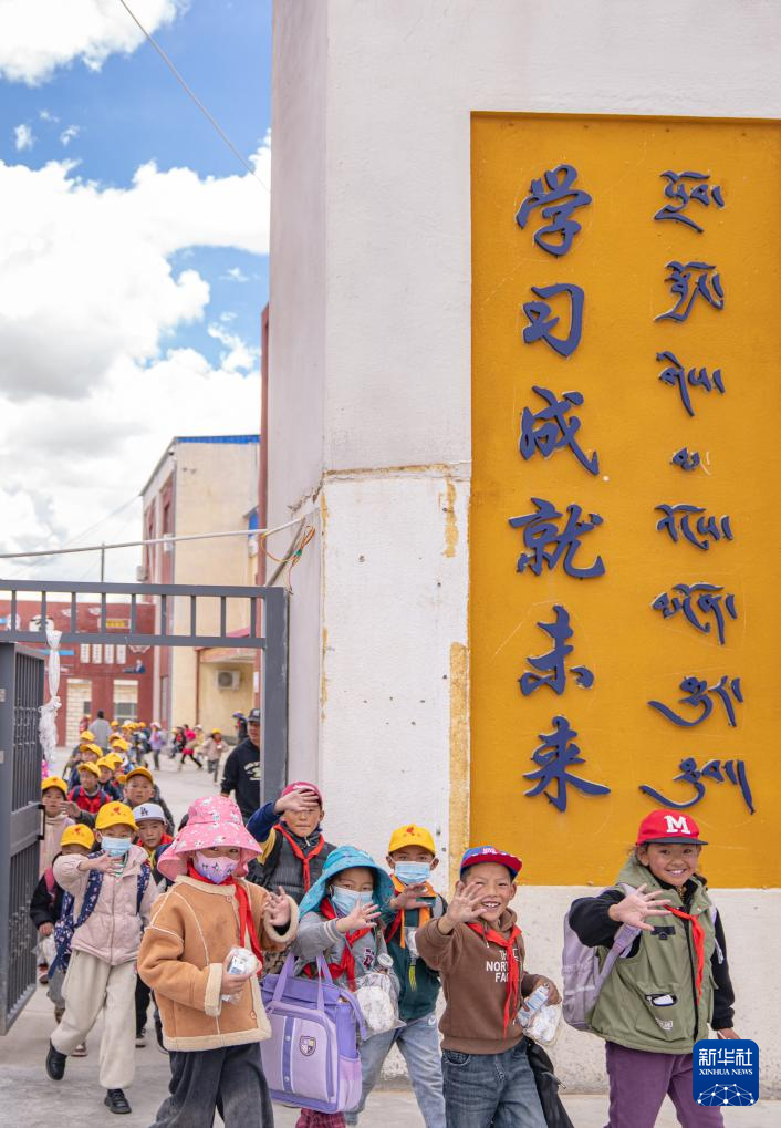 班戈縣中石化小學(xué)學(xué)生放學(xué)后走出校門(6月22日攝)。