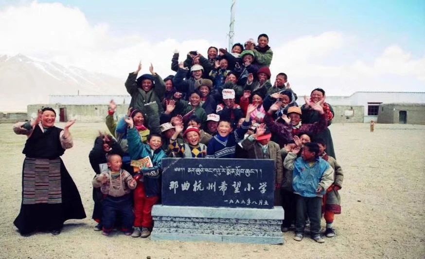 那曲市平均海拔達4500米以上,是西藏海拔最高的地級市。1995年5月,浙江省第一批援藏干部來到這里,他們調(diào)研發(fā)現(xiàn)當時那曲地區(qū)適齡兒童入學(xué)率只有22.5%,艱苦的環(huán)境和薄弱的基礎(chǔ)設(shè)施橫亙在高原兒童的求學(xué)路上。時任那曲縣常務(wù)副縣長的援藏干部姜軍給《杭州日報》領(lǐng)導(dǎo)寫了一封信,希望能夠獲得家鄉(xiāng)人民的支持,為那曲捐款建設(shè)一所小學(xué)。
