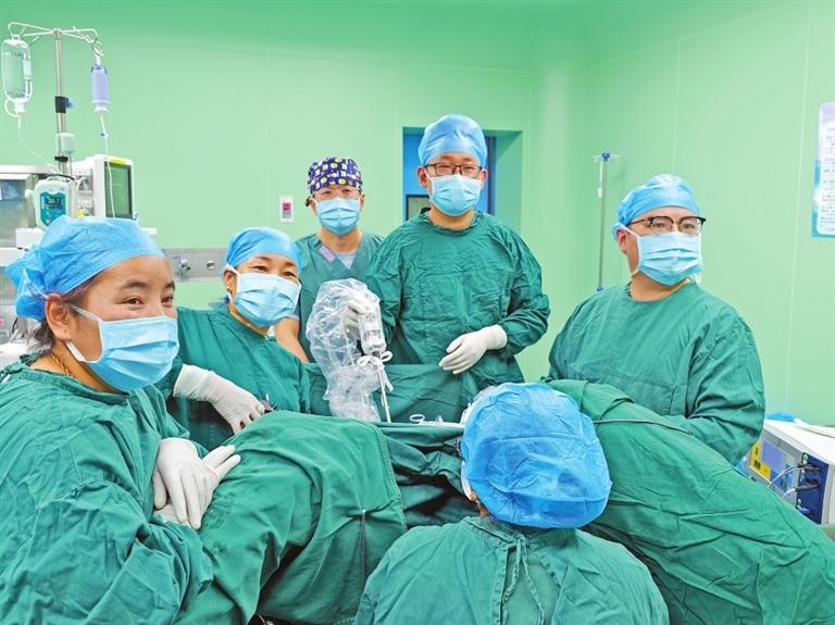 上海援藏醫(yī)療隊(duì)專家、日喀則市人民醫(yī)院婦科主任隋孟松帶領(lǐng)本地婦科醫(yī)生成功開展全市首例腹腔鏡下全子宮切除術(shù)。