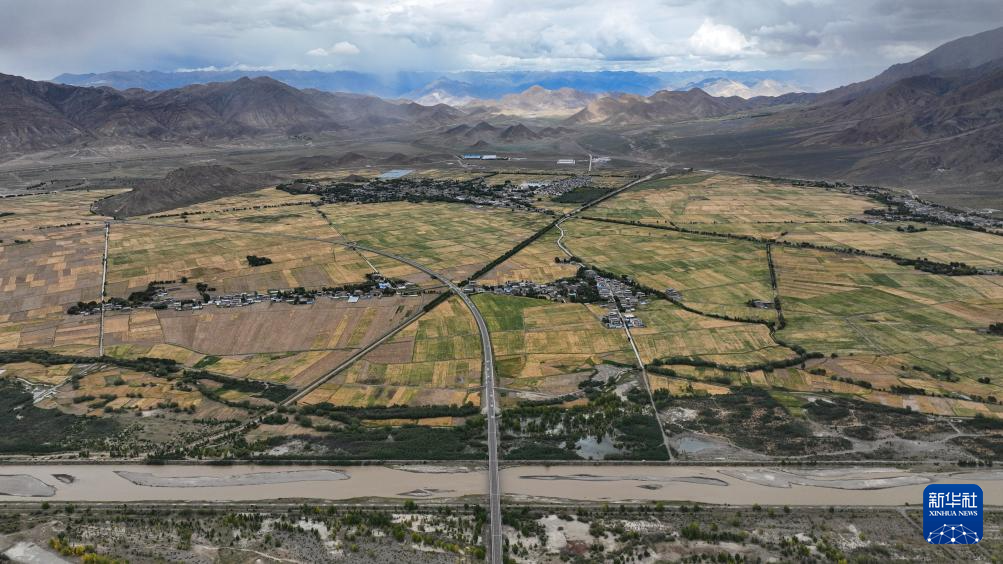 9月10日拍攝的西藏日喀則市白朗縣境內(nèi)的公路(無人機(jī)照片)。