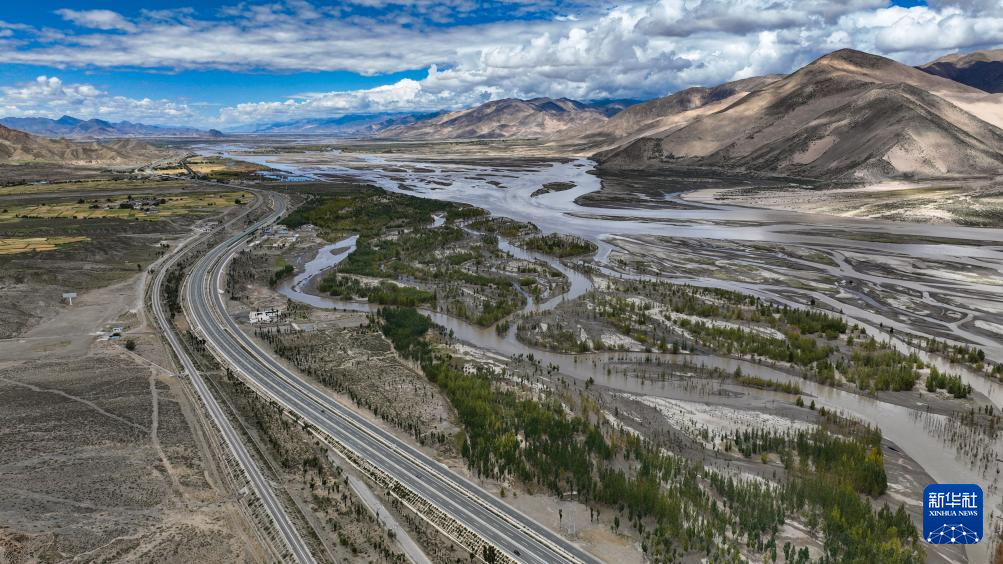 從空中俯瞰西藏拉薩至日喀則高等級(高速)公路南木林段(9月11日攝,無人機(jī)照片)。