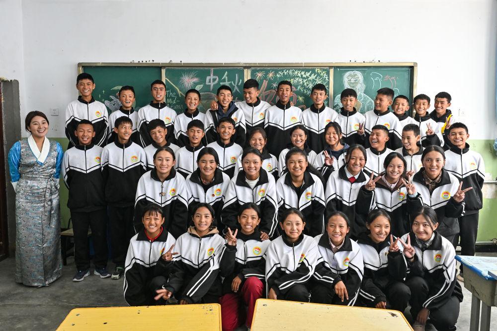 看完一段展示西藏經(jīng)濟(jì)社會發(fā)展日新月異的視頻,孩子們眼睛里亮亮的,爭相舉手發(fā)言:“現(xiàn)在交通越來越便捷,村里的游客多了,我們?nèi)ブ苓吺锌h也更方便?!薄案髅褡逋麍F(tuán)結(jié)一心!西藏的明天會更好!”……