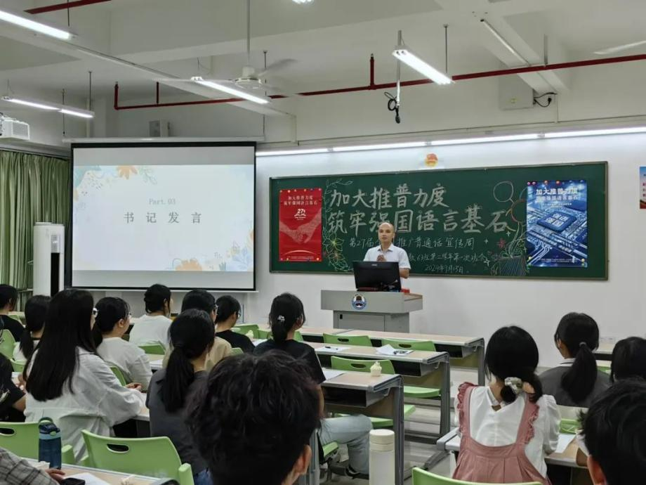 新時代教育高質(zhì)量發(fā)展的浪潮中,加強國家通用語言文字教育是提升國民素質(zhì)、促進(jìn)文化認(rèn)同、推動社會進(jìn)步的重要基石。嶺南師范學(xué)院積極響應(yīng)國家關(guān)于加強國家通用語言文字推廣普及的號召,圍繞“加大推普力度,筑牢強國語言基石”第27屆全國推普周主題,依托學(xué)?!督處熣Z言》課程組,成功舉辦了一系列豐富多彩、特色鮮明的語言文化活動,不僅彰顯了學(xué)院在師范教育領(lǐng)域的深厚底蘊與創(chuàng)新活力,更為國家語言文字建設(shè)和教育強國戰(zhàn)略貢獻(xiàn)了重要力量。