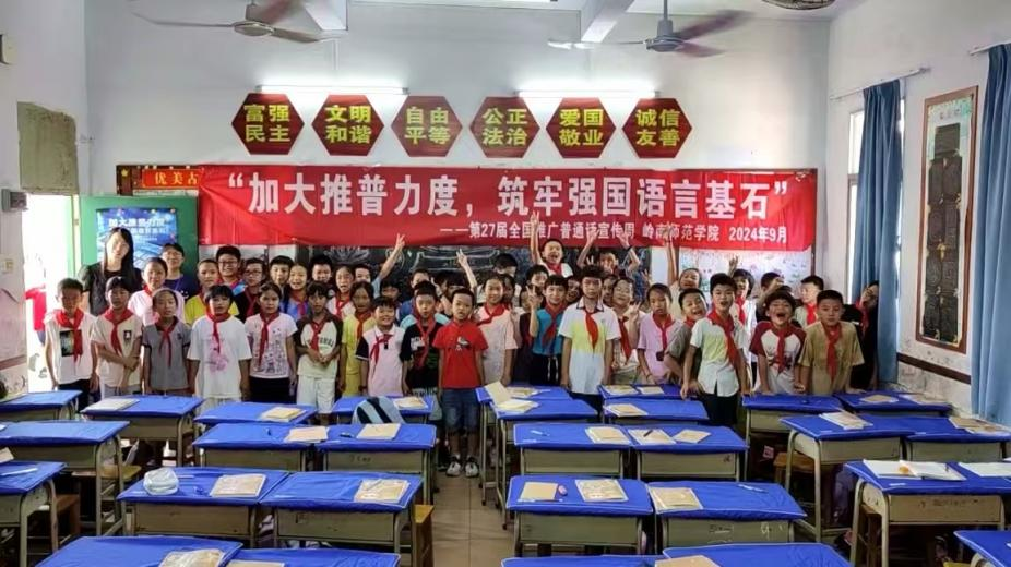 教育強國戰(zhàn)略背景下,為培養(yǎng)未來教育領(lǐng)軍人才、助力鄉(xiāng)村振興與邊疆教育發(fā)展,嶺南師范學(xué)院《教師語言》課程組十分重視師范生職業(yè)技能教育實踐。9月13日—9月18日,通過組織師范實習(xí)生、援藏支教實習(xí)生及扎根鄉(xiāng)村教育的畢業(yè)生積極參與各類推普活動,促進(jìn)了國家通用語言文字的廣泛普及,深刻體現(xiàn)了教育公平與文化傳承的時代價值。