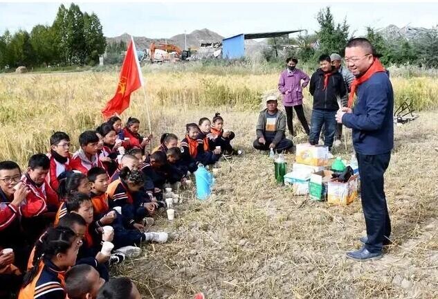 上海援藏教師潘杰(右一)帶領學生在青稞地里上思政課(2021年9月14日攝)。新華社發(fā)