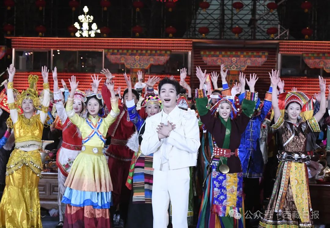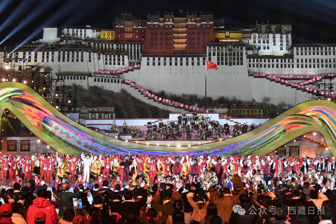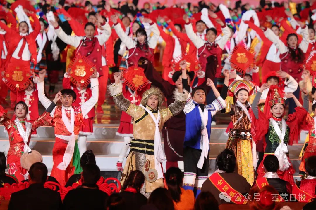 零點倒計時后,昌都市江達縣崗?fù)写迦罕?、山南市玉麥鄉(xiāng)卓嘎央宗姐妹、《日光之城》主創(chuàng)人員和9位援藏干部,代表西藏各族干部群眾,配合北京主會場和其他三個分會場演職人員,一起向全球華人拜年、送祝福。