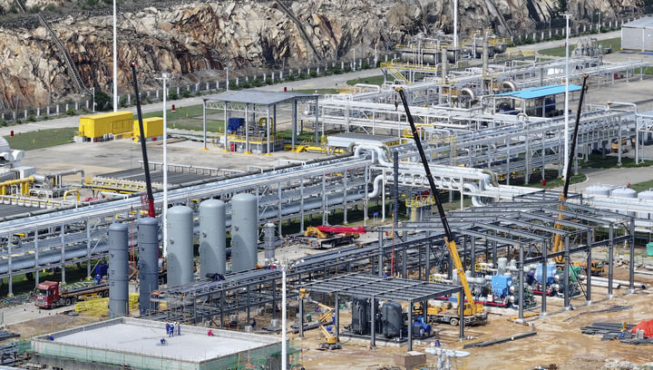 這是2024年6月21日拍攝的位于珠海經(jīng)濟(jì)開發(fā)區(qū)的中海石油深海開發(fā)有限公司二氧化碳回收利用項(xiàng)目塔器安裝現(xiàn)場(chǎng)。新華社發(fā)(邱婷 攝)