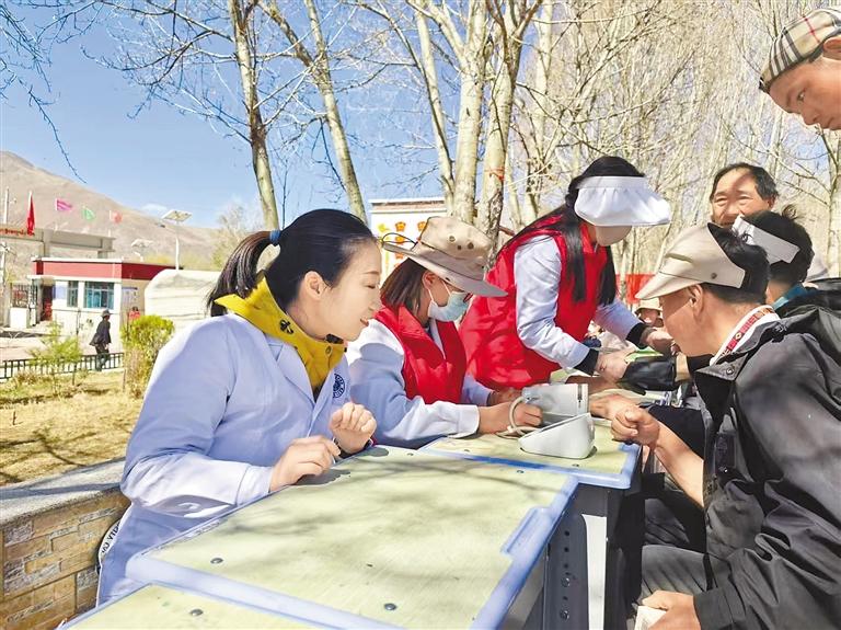 圖為北京市門頭溝區(qū)援藏醫(yī)療隊正在古榮鎮(zhèn)開展義診活動。本報記者 盧文靜 攝