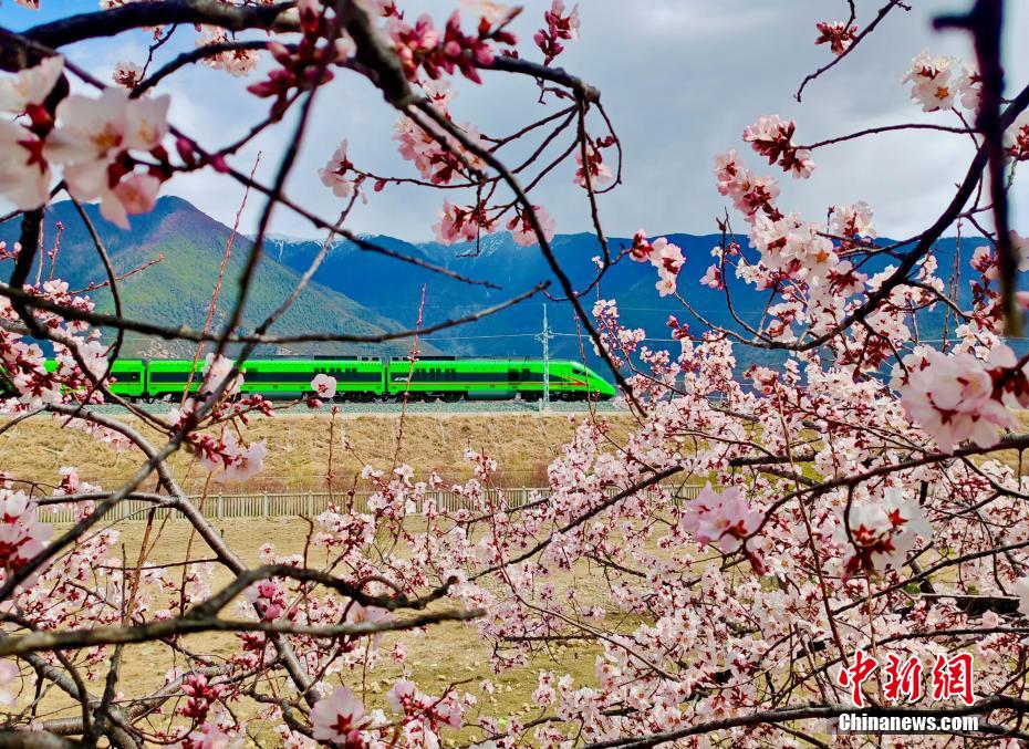 四月伊始,拉林鐵路沿線的桃花迎來了盛開時節(jié),藍(lán)天白云下,一朵朵桃花漲紅了臉頰,與遠(yuǎn)處的雪山交相輝映,吸引了不少游客來感受高原春天的獨(dú)特魅力。當(dāng)一列列火車穿過花海,映入眼簾的皆是滿山遍野的桃花,讓人仿佛置身于秀美的江南之中。圖為拉林鐵路沿線桃花盛開。