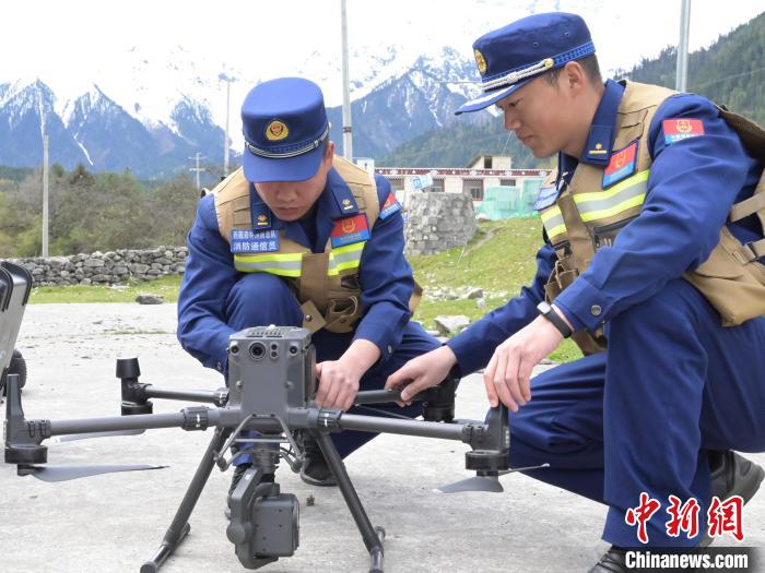 圖為消防員正在組裝無人機(jī)。西藏林芝市波密縣森林消防中隊(duì)供圖