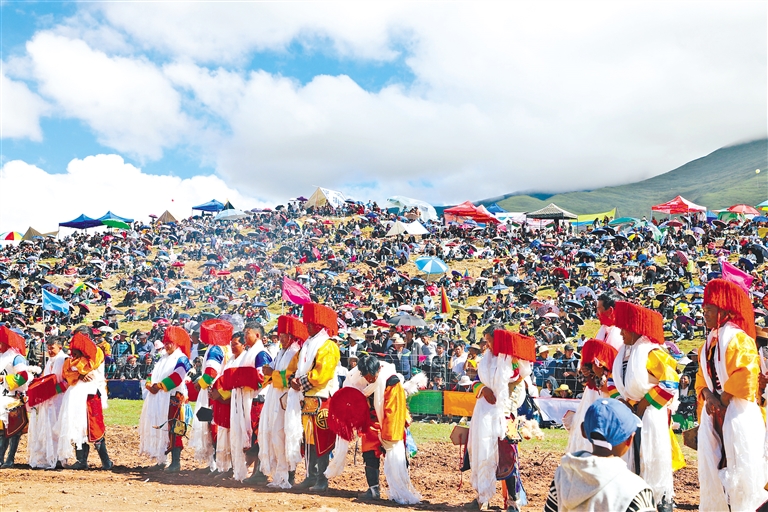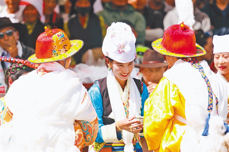 在邊交林鄉(xiāng)當(dāng)杰村“望果節(jié)”活動(dòng)現(xiàn)場,隨著激昂的《運(yùn)動(dòng)員進(jìn)行曲》,當(dāng)杰村“平措林望果節(jié)”活動(dòng)拉開帷幕,38名馬術(shù)運(yùn)動(dòng)員、38名射箭運(yùn)動(dòng)員在2萬多名觀眾的歡呼聲中邁入現(xiàn)場。