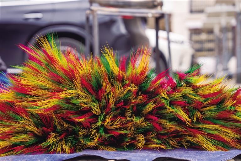 “銷量好的時(shí)候一天可以賣近1000元,一般的時(shí)候也有500元左右?!毖虢鹱屑?xì)檢查著剛?cè)竞蒙摹傲_薩梅朵”,她的手和臉因長(zhǎng)時(shí)間接觸顏料而沾滿色彩?!耙郧啊_薩梅朵’的顏色并不多,只有玫紅色,上色不均勻也沒人會(huì)說什么。但現(xiàn)在,顏色必須亮麗、均勻,這也體現(xiàn)了大家生活越來越好,生活品質(zhì)越來越高?!毖虢鹦χf。