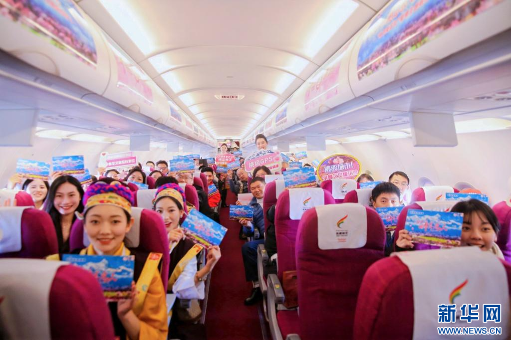 在首航旅途中,航班以“林芝桃花”為主題,載著來(lái)自全國(guó)各地的林芝“醉”美戀人、文旅達(dá)人、媒體代表及游客等100余人,開展了派發(fā)林芝來(lái)信、情侶云端告白、情歌合唱、首航蛋糕慶祝儀式等精彩互動(dòng)環(huán)節(jié),并通過桃花仙子云端文旅推介讓嘉賓和游客們對(duì)林芝滿懷憧憬。