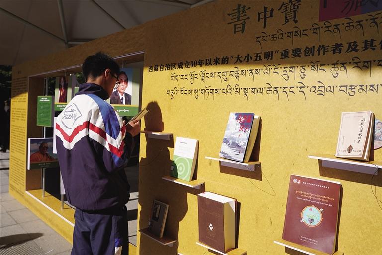 拉薩某學(xué)校學(xué)生在活動(dòng)現(xiàn)場(chǎng)閱讀書(shū)籍。圖/記者 余書(shū)冉