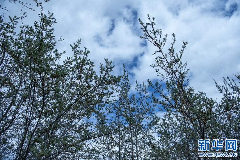 種植生長五年左右的沙棘(6月8日攝)。新華網(wǎng) 旦增努布 攝