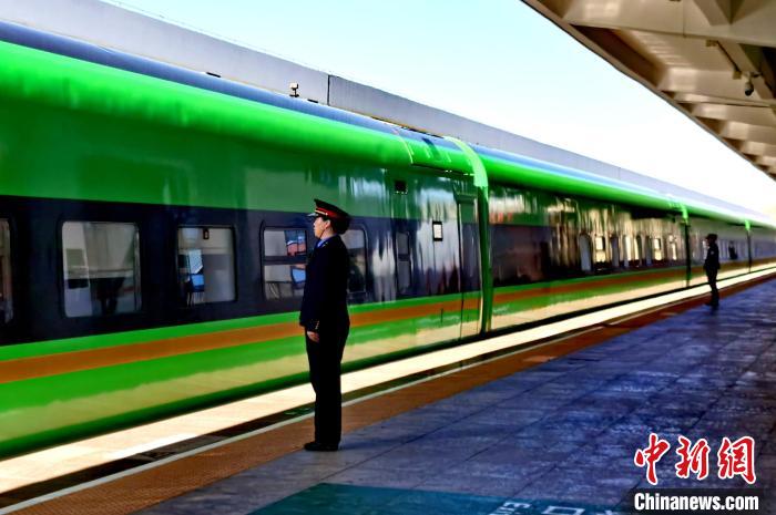 圖為暑運(yùn)期間從日喀則站開(kāi)往拉薩站的復(fù)興號(hào)動(dòng)車駛離車站。斗山得 攝