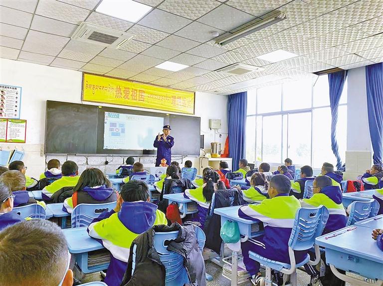 圖為消防工作人員向?qū)W生講解消防應(yīng)急知識。記者 巴桑旺姆 攝
