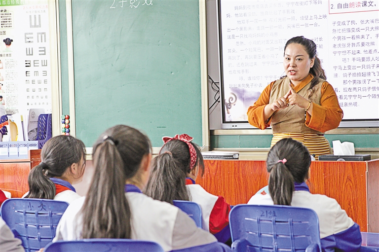 在昌都市特殊學(xué)校的課堂上,有一位老師以她獨(dú)特的方式詮釋著教育的意義。她就是澤巴卓嘎,一位被孩子們親切稱為“心靈引路人”的特殊學(xué)校教師。課堂上,她像一位舞者,優(yōu)雅靈動(dòng),用手語(yǔ)與聽障的孩子們交流,仿佛在傳遞一曲無(wú)聲的樂章。
