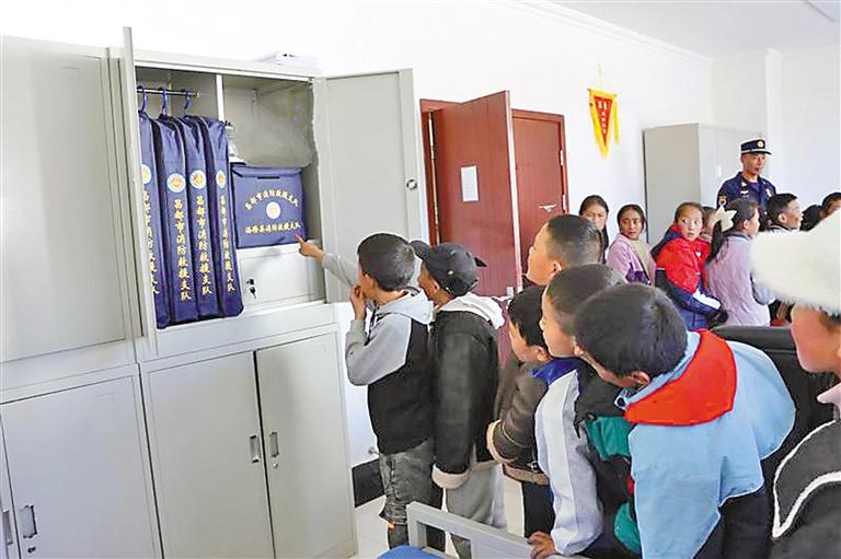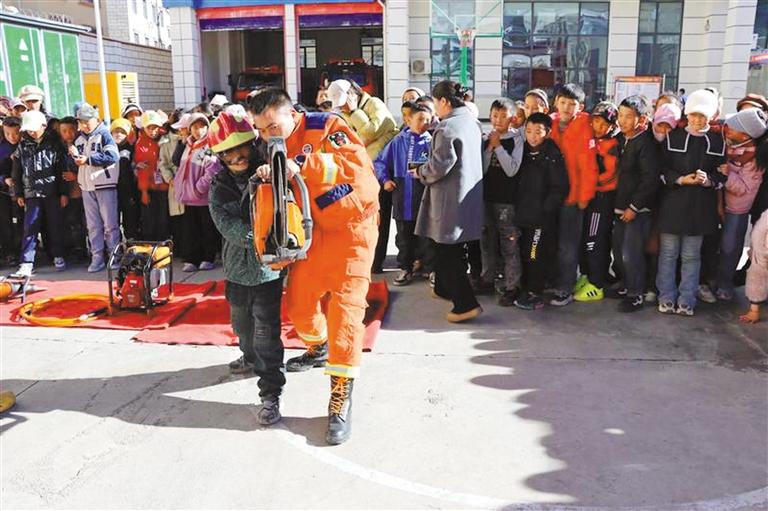 圖為學(xué)生在消防救援大隊(duì)內(nèi)參觀。記者 貢秋曲措 攝