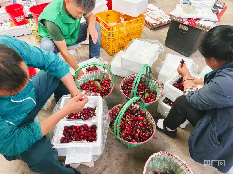 村民正在給車厘子打包裝箱。央廣網(wǎng)發(fā) 馬文豪 攝
