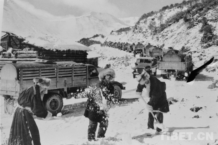 《109道班工人在風(fēng)雪中鏟雪開路》 作者:唐召明
