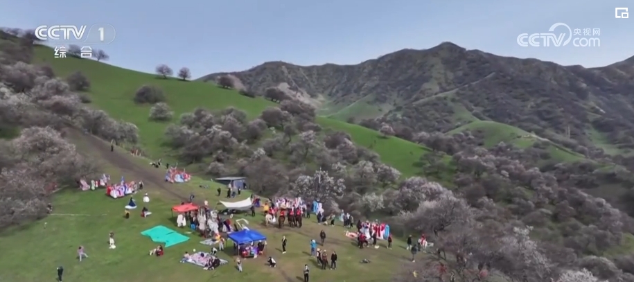 在天山北坡的新源縣吐?tīng)柛l(xiāng),遠(yuǎn)近聞名的野杏溝進(jìn)入盛花期。遠(yuǎn)處雪山綿延、近處春意盎然,吸引了全國(guó)各地的游客前來(lái)“打卡”。