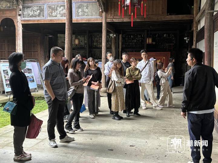 依山而建、傍水而居,位于磐安的櫸溪村又帶給臺青們另一幅鄉(xiāng)村畫卷,古樸宏偉的孔氏家廟,村落沿著溪流和山坡緩緩延伸,這里是江南地區(qū)一支孔子后裔聚集地。“這里每一條巷子里都能感覺到悠久的歷史氣息?!币宦飞吓_青們不停地拿起手機打卡留念。