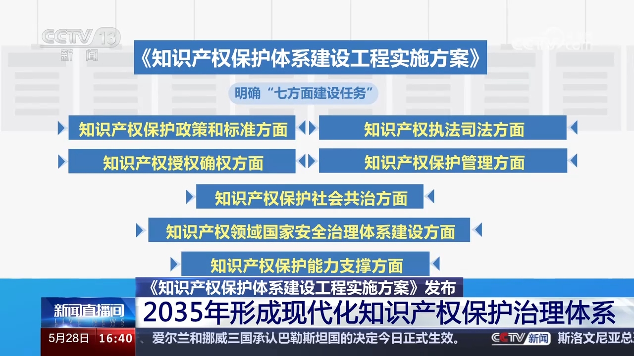 國家知識產(chǎn)權(quán)局5月28日舉行新聞發(fā)布會,重點介紹《知識產(chǎn)權(quán)保護體系建設(shè)工程實施方案》(以下簡稱《方案》)有關(guān)情況?!斗桨浮访鞔_,到2035年,知識產(chǎn)權(quán)保護體系和保護能力現(xiàn)代化基本實現(xiàn),形成政府履職盡責、執(zhí)法部門嚴格監(jiān)管、司法機關(guān)公正司法、經(jīng)營主體規(guī)范管理、行業(yè)組織自律自治、社會公眾誠信守法的現(xiàn)代化知識產(chǎn)權(quán)保護治理體系。