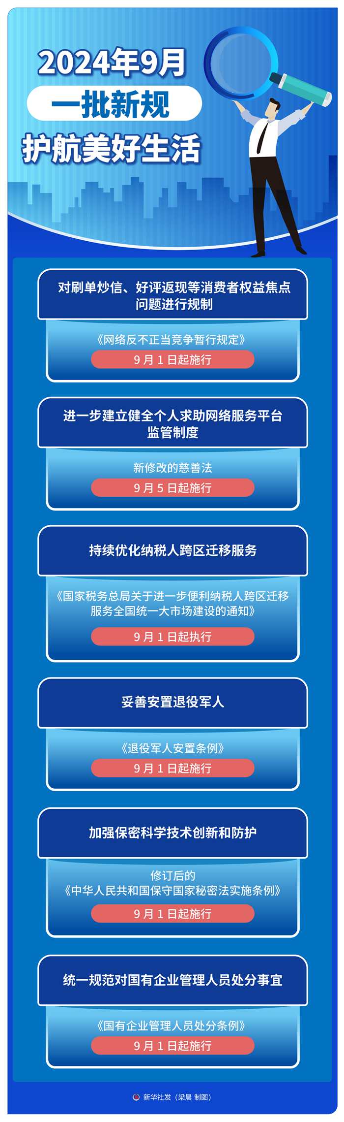 對刷單炒信、好評(píng)返現(xiàn)等消費(fèi)者權(quán)益焦點(diǎn)問題進(jìn)行規(guī)制,進(jìn)一步建立健全個(gè)人求助網(wǎng)絡(luò)服務(wù)平臺(tái)監(jiān)管制度,持續(xù)優(yōu)化納稅人跨區(qū)遷移服務(wù)……9月,一批新規(guī)護(hù)航美好生活,一起來看!