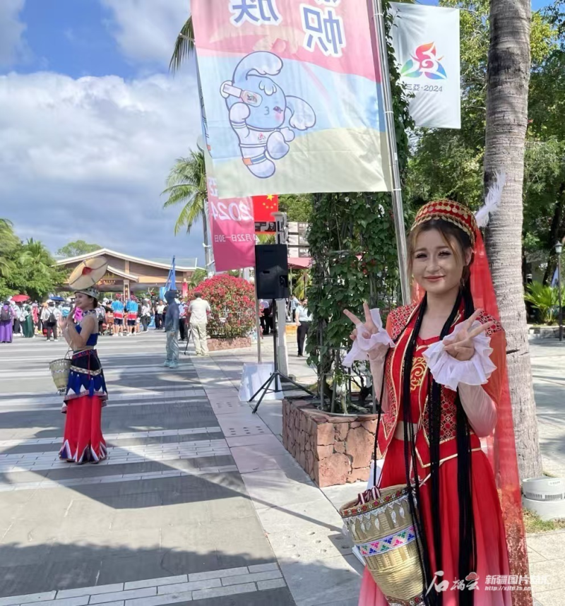 歡迎儀式的人群中,一頭麻花辮的艾麗非熱·艾爾肯非常引人注意,很多運動員前去與她合影,“我們排練一個月了,我要用最好的狀態(tài)為運動員加油,今天看見了很多家鄉(xiāng)的運動員,特別激動,等我表演完就去找他們合影。”艾麗非熱介紹,她家在新疆阿克蘇,在三亞理工職業(yè)學院上大二,這幾天每天都在關注運動會的各類信息。