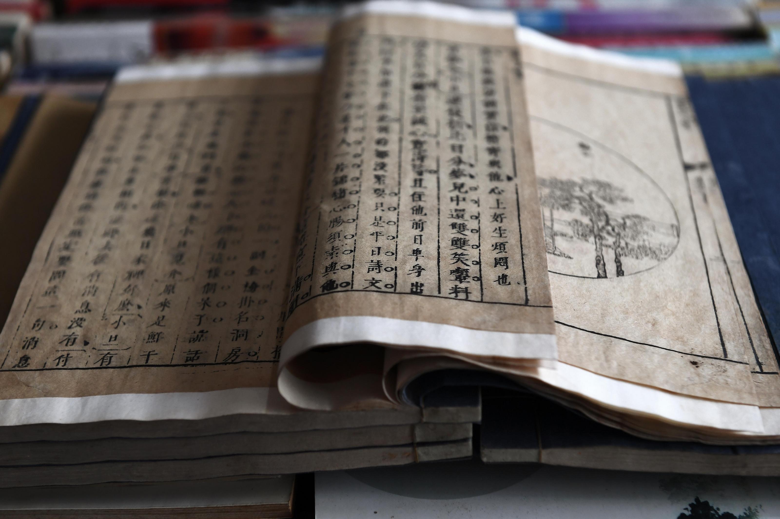 百歲老人守店,書架上的古書都更添了古韻與神采。線裝書脊微微發(fā)亮,紙頁(yè)間浮著墨香,夾在其中的白色標(biāo)簽泛著時(shí)光的黃暈,上面是毛筆標(biāo)記的名錄——《三國(guó)》《水滸》《山海經(jīng)》《論語(yǔ)》《王陽(yáng)明先生全集》《義門讀書記》《新刊校定集注杜詩(shī)》《宋六十名家詞》……