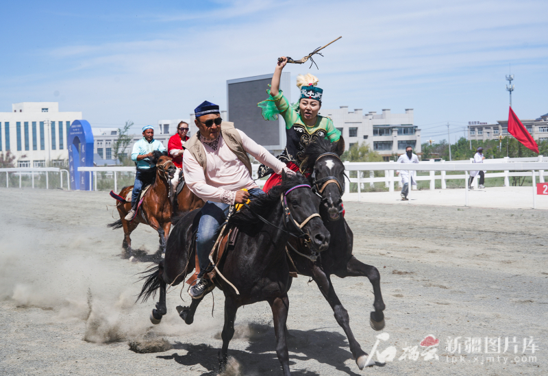 5月31日,中國·新疆第五屆駱駝產業(yè)展暨全疆賽馬大會在木壘哈薩克自治縣激情啟幕?;顒蝇F(xiàn)場在進行“姑娘追”表演。常誼誼 攝
