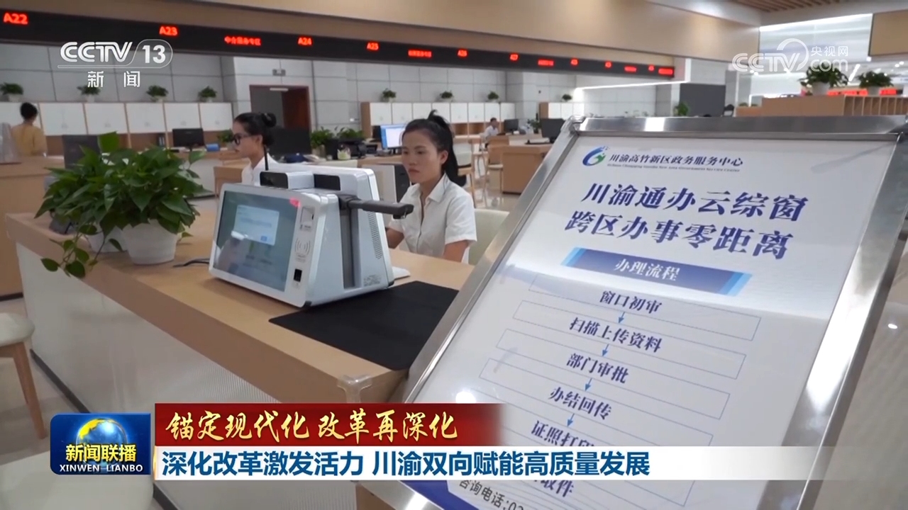 川渝高竹新區(qū)地處四川、重慶交界,由四川廣安市和重慶渝北區(qū)部分行政區(qū)域組成,是全國首個(gè)跨省域共建的新區(qū)。在前不久建成投用的新區(qū)政務(wù)服務(wù)大廳,10多個(gè)服務(wù)專區(qū)里川渝兩地合署辦公,將百余項(xiàng)業(yè)務(wù)合并辦理,為新區(qū)企業(yè)和百姓提供了“進(jìn)一扇門,辦兩地事”的便捷體驗(yàn)。