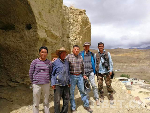 圖為2019年重返西藏自治區(qū)阿里地區(qū)的皮央遺址,左起為札達(dá)縣文物局局長羅丹、村民仁真、霍巍、李永憲、夏格旺堆