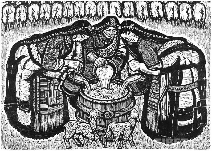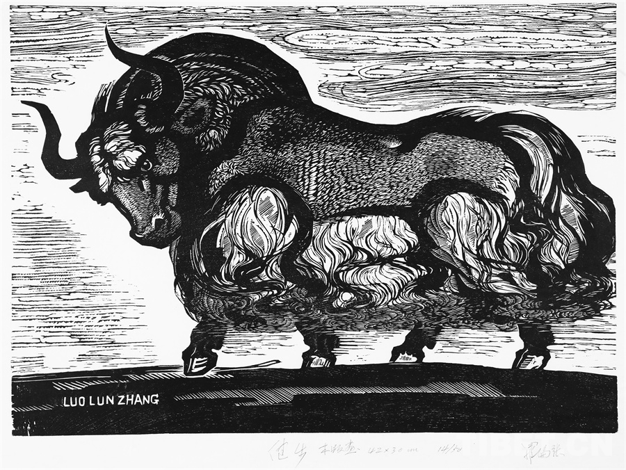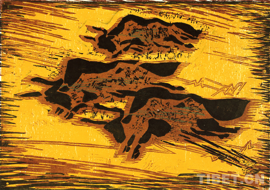 如果非要說我在版畫技法上有什么創(chuàng)新,參照西藏匠人刻經(jīng)文,在石頭上刻出來然后印出來也許就算。這不是一般石版畫概念,那叫石印,平版印刷;我這是凹版印刷。刻起來很費勁,我也不管費不費勁。我有一批這樣的石刻作品。綜合版作品手法較多,我通常分別在石板和木板上刻,然后套起來印。如果搞學(xué)術(shù)交流,也許值得一談。至于說到創(chuàng)新,第一我不認(rèn)為我有什么創(chuàng)新,第二我不認(rèn)為在藝術(shù)上、在美術(shù)上能夠輕易談創(chuàng)新這個詞。還有第三個觀點:不需要創(chuàng)新。很簡單,你先把傳統(tǒng)學(xué)到手再說。既是傳統(tǒng),就有它的存在理由,否則早就夭折了,還傳什么統(tǒng)呢?傳,而且統(tǒng)啊!統(tǒng)是什么意思?基調(diào)是它統(tǒng)一起來的。先把傳統(tǒng)學(xué)到手,爐火純青了,神來之筆出現(xiàn)了,才有可能有所創(chuàng)造。基礎(chǔ)是重要的。