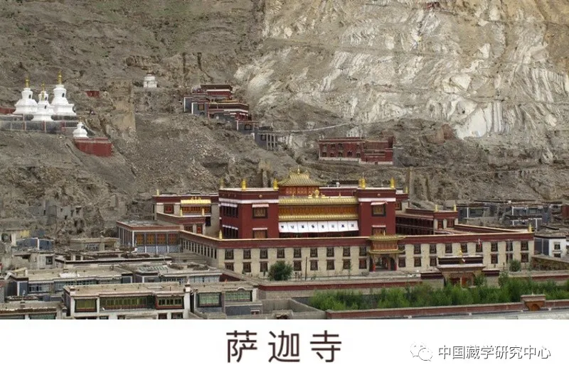薩迦派,“薩迦”藏語(yǔ)意為“灰白色的土地”,同時(shí)因該派寺院圍墻涂有象征文殊、觀音、金剛手菩薩的紅、白、藍(lán)三色花條而被俗稱為“花教”。1073年,后藏的昆·貢卻杰布(1034-1102)在薩迦地方建立薩迦寺,從此逐漸形成薩迦派。該派獨(dú)特的密法傳承為道果教授。
