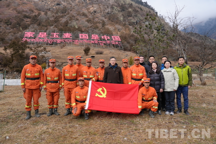 圖為中國西藏信息中心黨支部(現(xiàn)已成立中國西藏信息中心黨總支)與那曲森林消防大隊(duì)玉麥駐防分隊(duì)重溫入黨誓詞合影 攝影:陳浩力