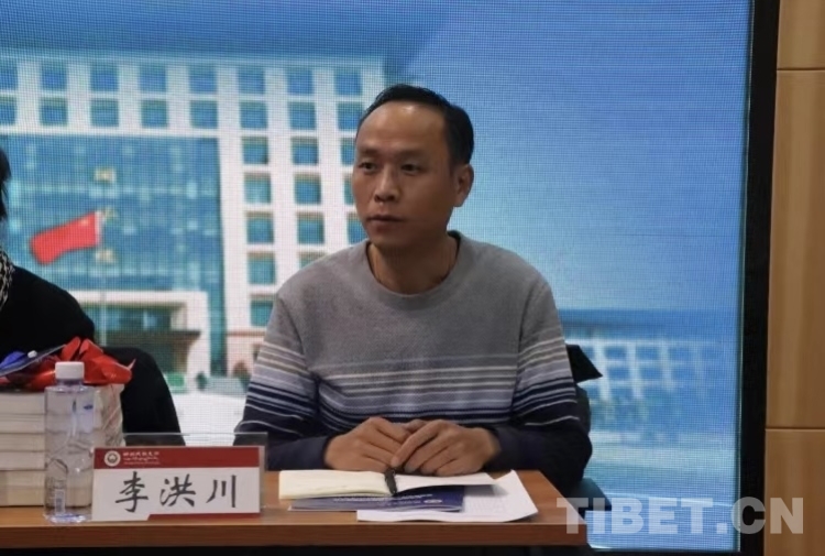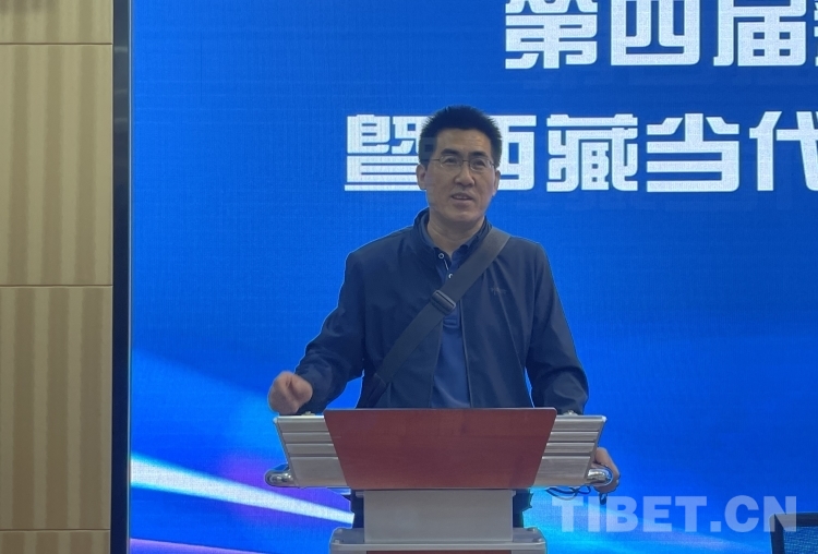圖為西藏文藝評(píng)論家協(xié)會(huì)秘書長(zhǎng)李洪川作主題發(fā)言