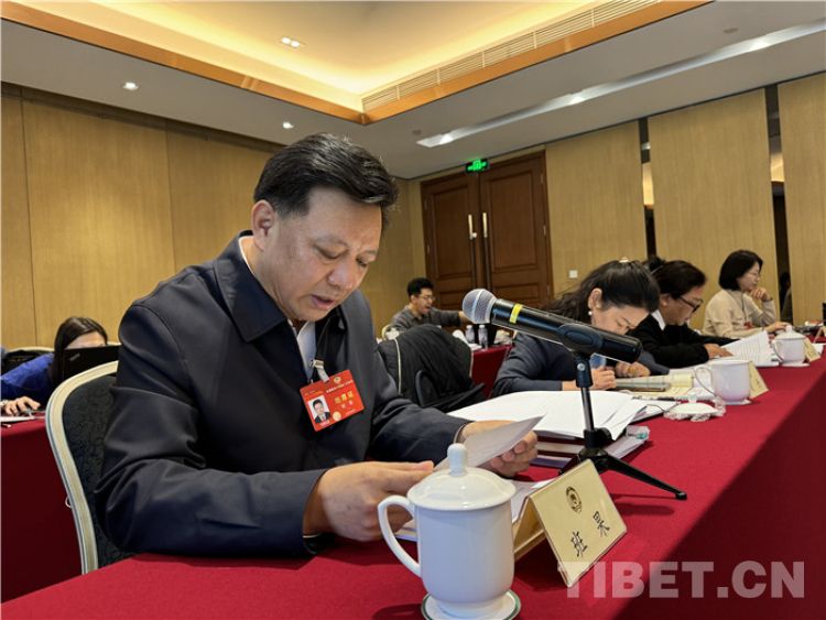 圖為全國政協(xié)委員,青海省委常委、統(tǒng)戰(zhàn)部部長(zhǎng)班果在全國兩會(huì)期間參加小組會(huì)議