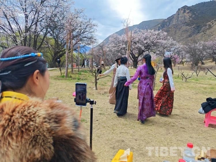 在嘎拉村桃花源內(nèi)、民族文化體驗區(qū)、產(chǎn)品展銷點……都能看到林芝市職業(yè)技術(shù)學校學生們的身影。學生們走進桃花林,以藍天白云、皚皚雪山為背景,通過直播帶全國各地的網(wǎng)友們云游林芝“桃花第一村”,展示著桃花灼灼盛開的美景。他們生動的解說和精彩的直播吸引了大量觀眾“云游林芝 云賞桃花”,體驗不一樣的桃源春色。