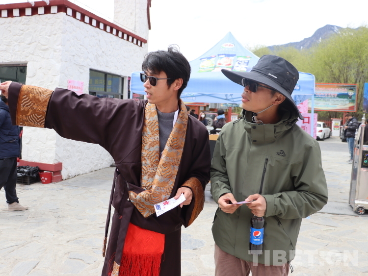 在展品展銷點,學生們向游客展示林芝的特色產(chǎn)品,引導游客關(guān)注“巴宜供銷優(yōu)選”抖音賬號,參與抽獎活動,助力巴宜區(qū)的農(nóng)產(chǎn)品推廣和鄉(xiāng)村振興。