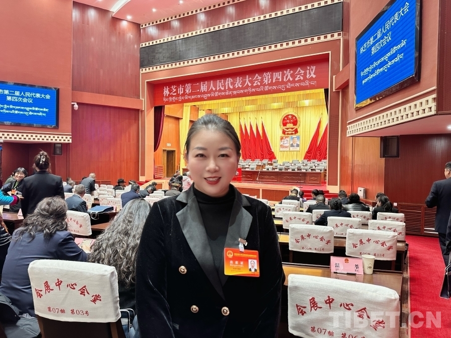 圖為林芝市人大代表付燕在林芝市人大會(huì)場留影