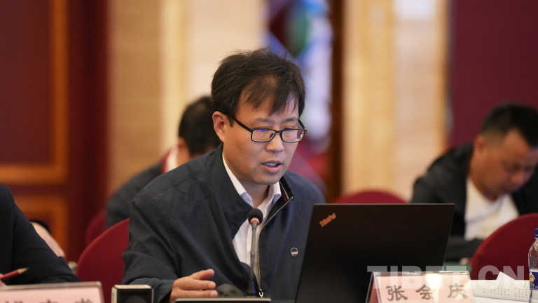 圖為西藏民族大學(xué)副教授、碩士生導(dǎo)師張會慶進(jìn)行交流發(fā)言 攝影:德吉卓瑪