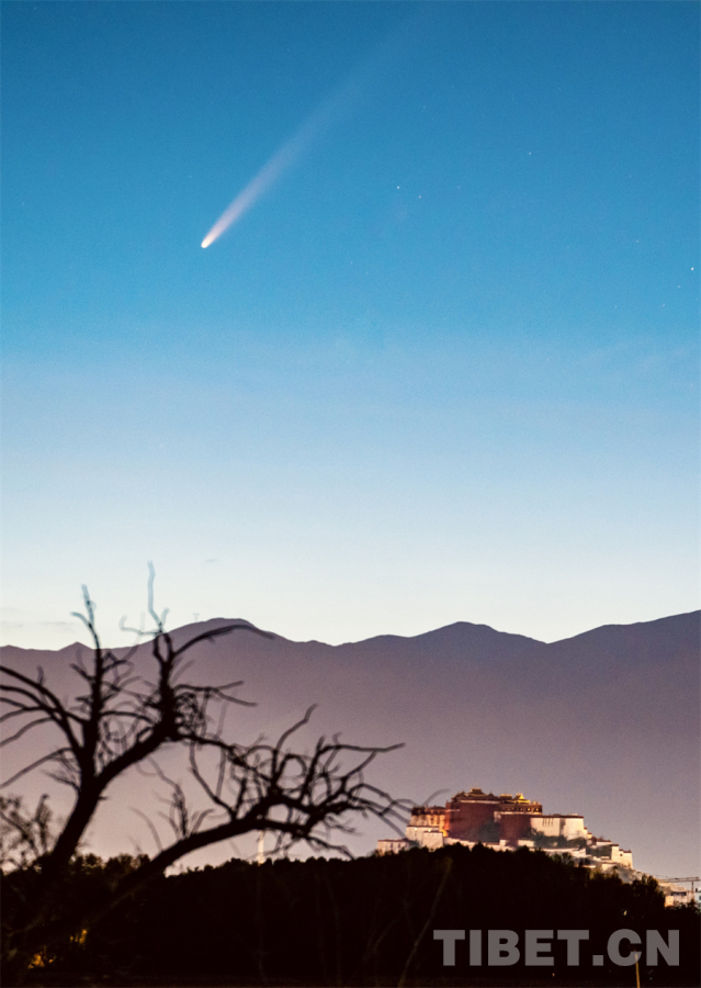 在今年的觀測中,紫金山彗星于9月28日到達(dá)近日點,隨后在10月12日達(dá)到近地點,亮度達(dá)到最佳。9月30日凌晨,攝影家李珩在拉薩市拉魯濕地附近成功記錄下千年布達(dá)拉宮與6萬年一遇的紫金山彗星同框畫面,宇宙級浪漫在西藏上演。